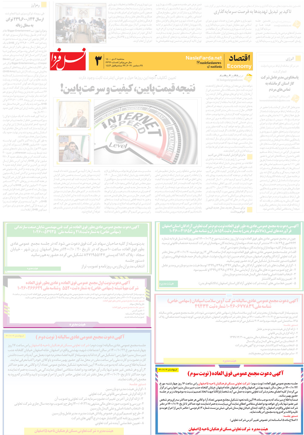 آگهی دعوت مجمع عمومی فوق العاده نوبت سوم