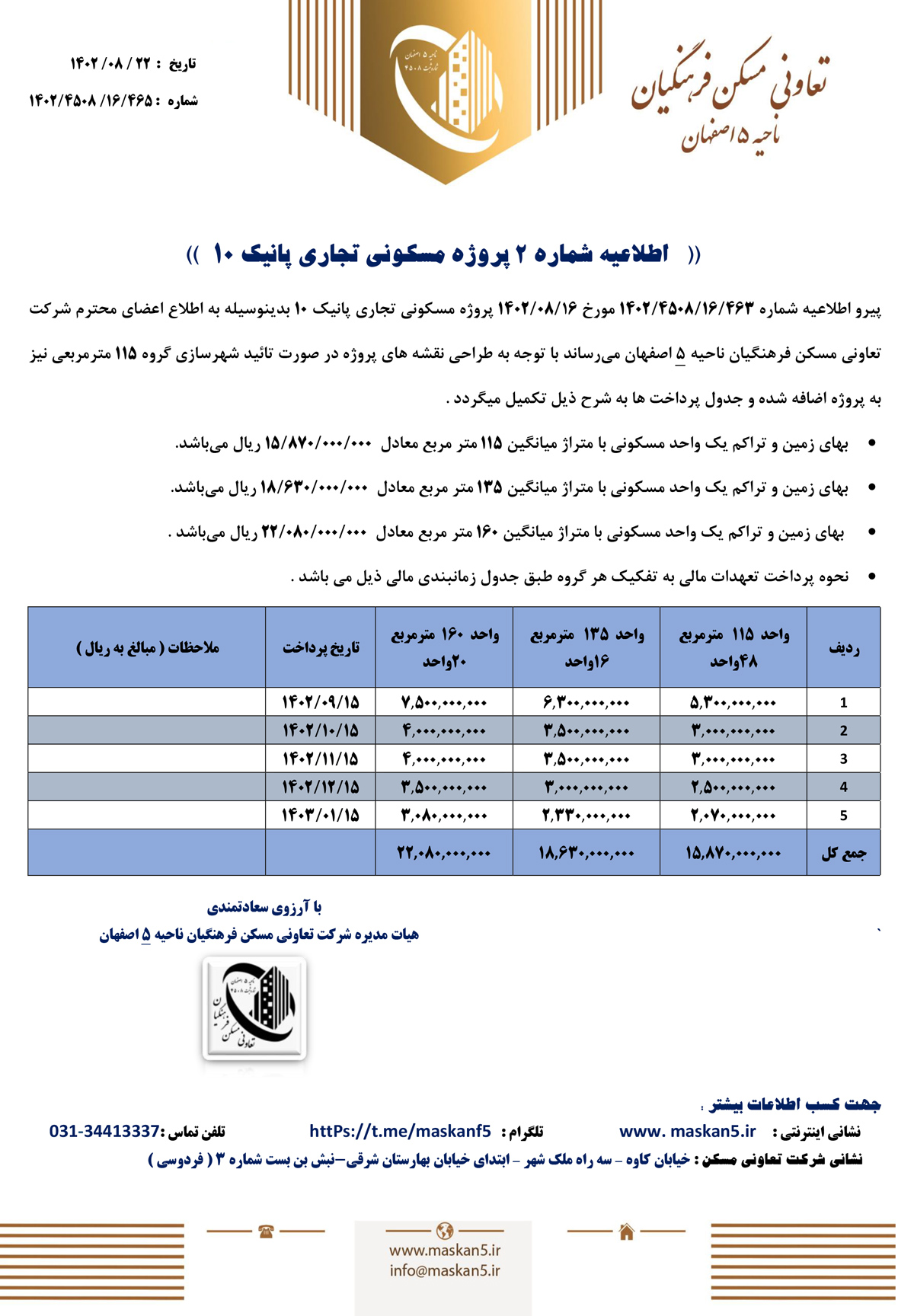 اطلاعیه شماره 2 پروژه آل محمد (پانیک 10)