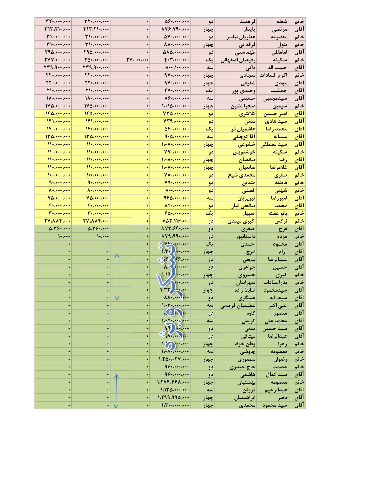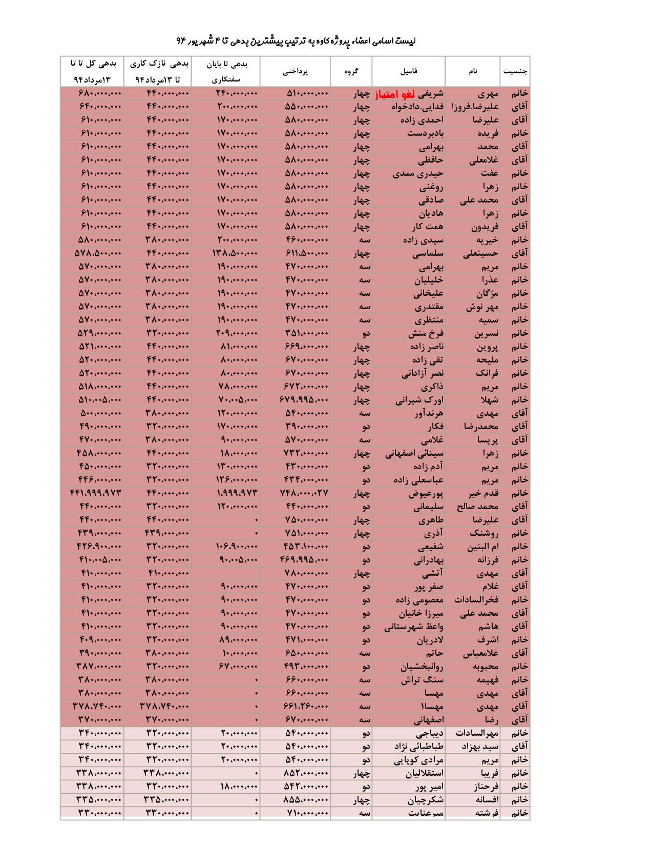 ليست اعضاء پروژه كاوه به ترتيب بيشترين بدهي تا 4 شهريور ماه 94