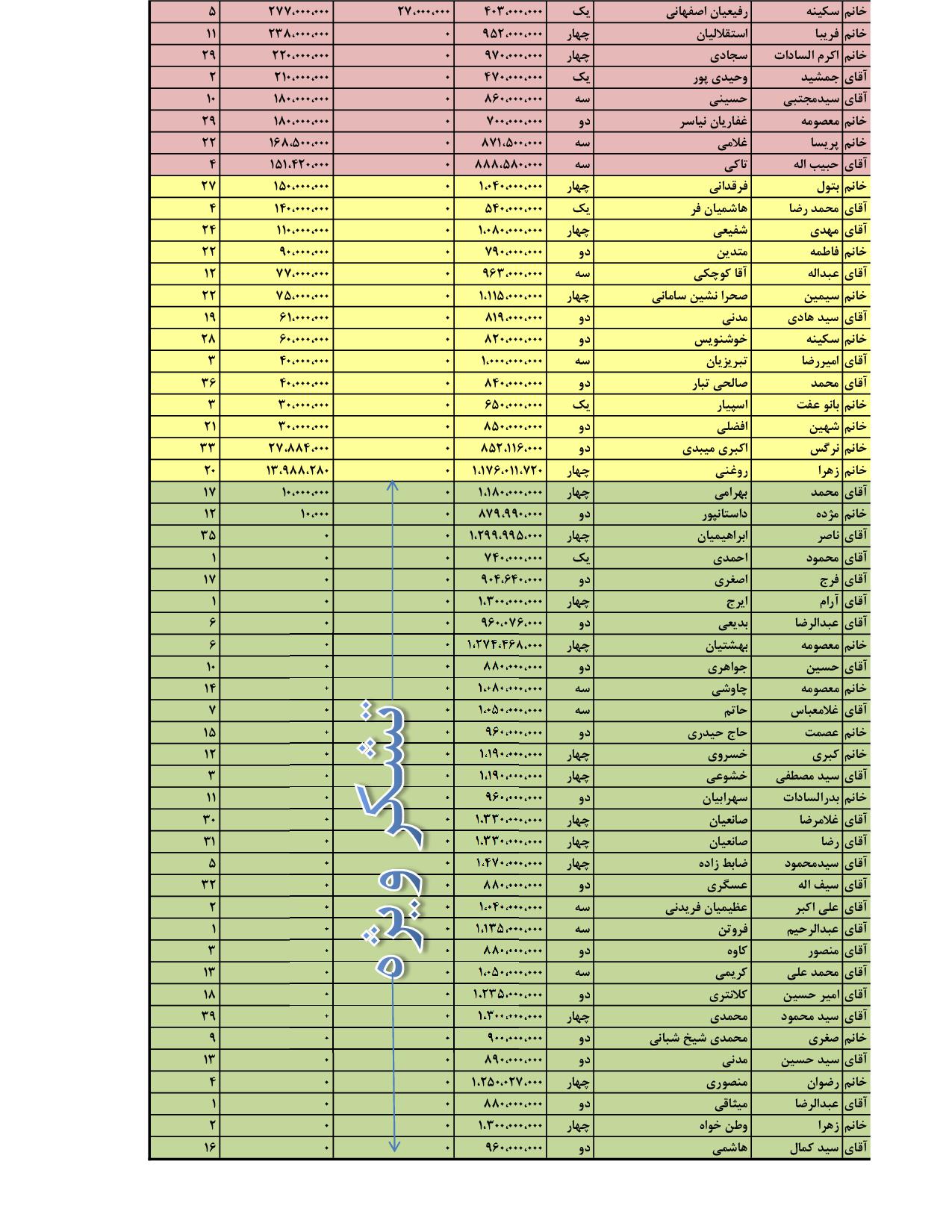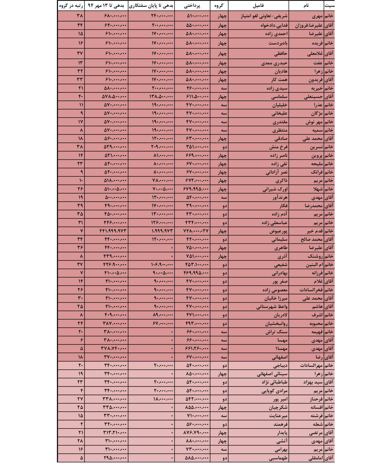 ليست پرداختي اعضا پروژه كاوه بر اساس بيشترين بدهي تا 13 مهر ماه 94